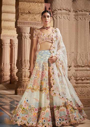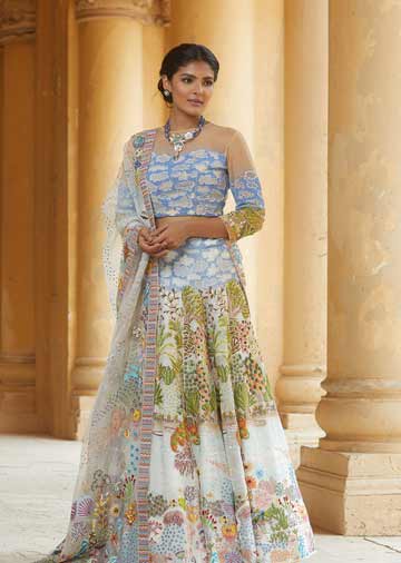Birds, the skies, vegetation and aquatic creatures come alive in this lehenga by Rahul Mishra ICW2020 – FDCI