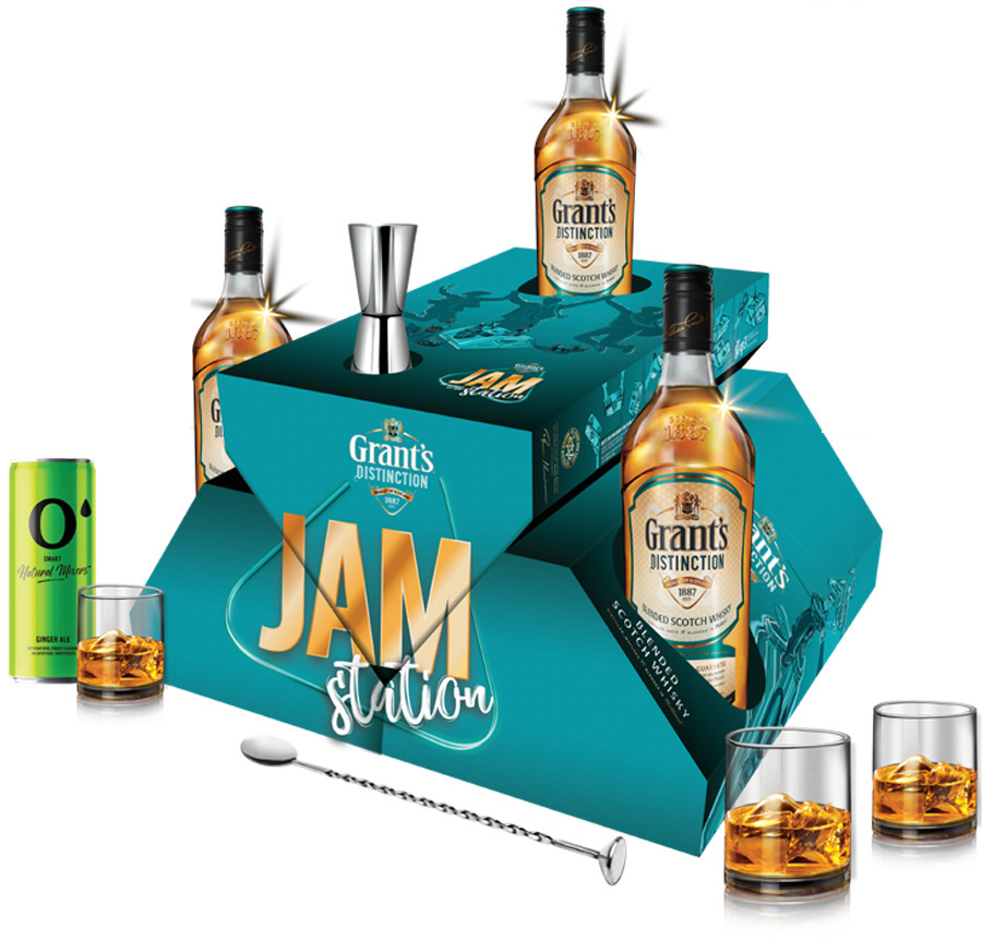 Inspired by the “few” who raise your game and fuel your drive to reach your goals, Grant’s Distinction Jam Station is a collection of three limited-edition packs that work as a single unit, which we like to call... The Ultimate DIY Bar! The three unique Grant’s Distinction packs come with a glass and a bar accessory each. A Measurer to gauge your appetite for success. A Bar Spoon to stir some magic into your ideas. A Mixer to help you ease things up. Each plays a major role in elevating your banter while you brainstorm with your buddies. Available in select markets, waiting to join your next jam session!