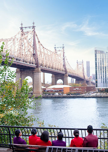 The Air India crew sit at Sutton Place Park (Underneath Queensboro Bridge)