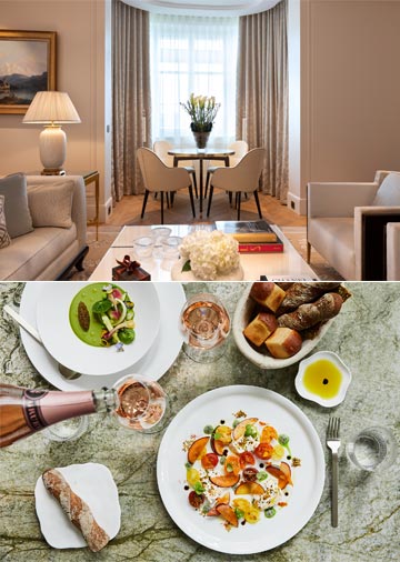 Twenty-one of the suites have a full lake view. The jewels in the crown are the Presidential Suite, designed in elegant ivory tones and offering panoramic lake views from every room with a private dining room and loggia, and the Royal Suite, reached by private lift, and designed to resemble a chic Parisian apartment.