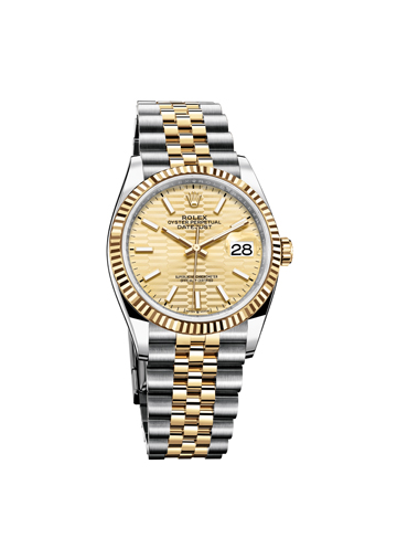 Created by Hans Wilsdorf in 1926, the Oyster – the world’s first waterproof watch case – embodies all the values of Rolex. Precise, waterproof, and benefiting from a self-winding system via a Perpetual rotor, its sleek and elegant design has been enhanced by textured and coloured dials. The Rolex Datejust 36 retains the enduring aesthetic codes that make the Datejust collection instantly recognizable.