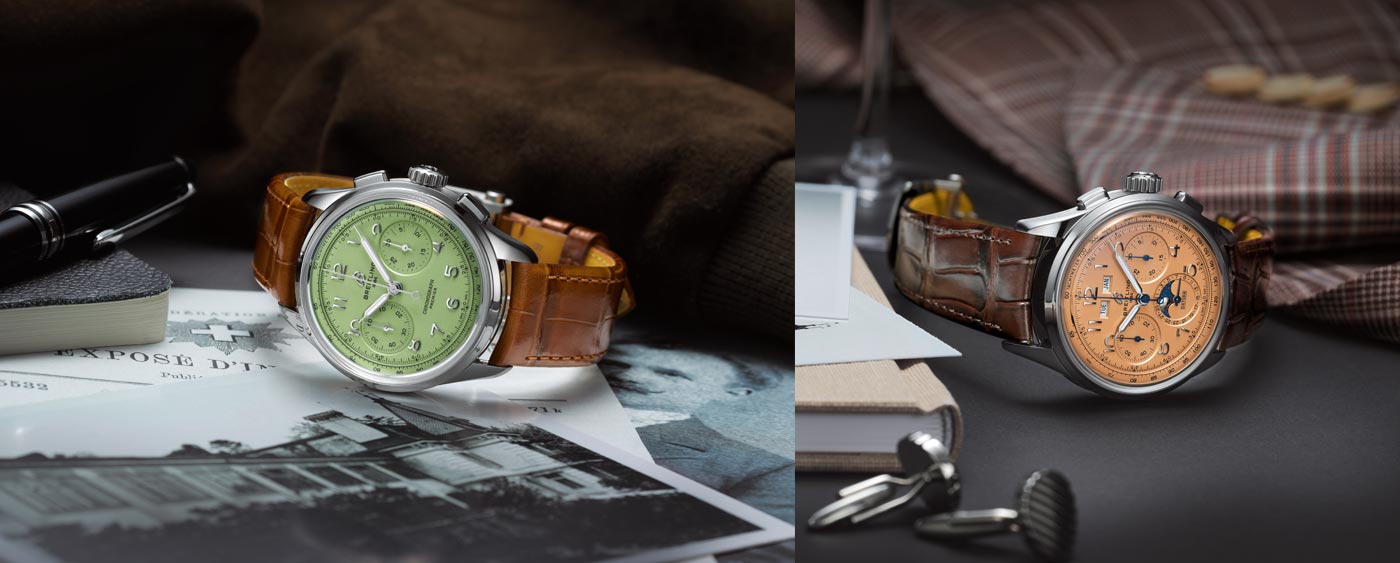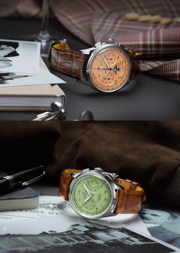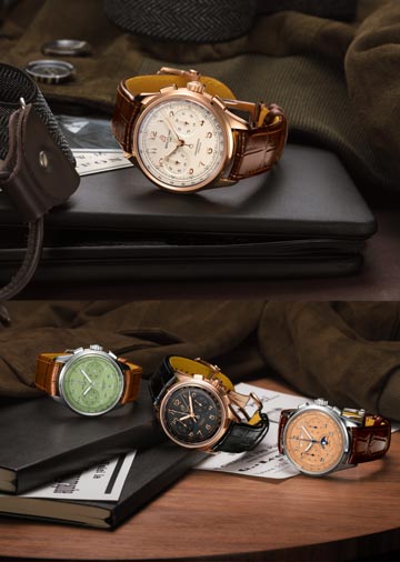 All feature Arabic numerals, vintage-inspired hands and semi-shiny alligator straps with tone- on-tone stitching. Every watch is a COSC-certified chronometer and water-resistant up to 100 meters.