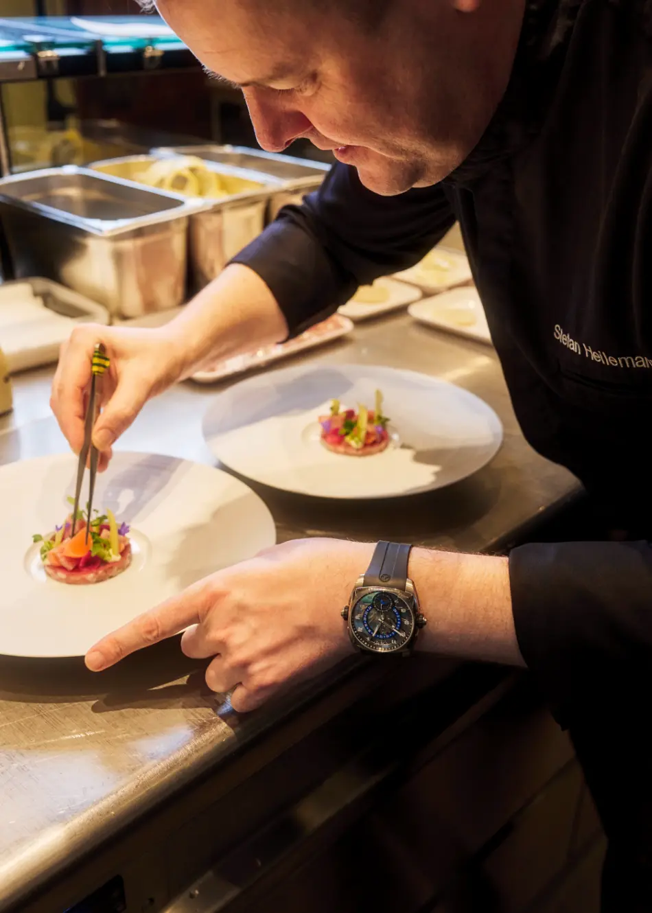 The link between the passion for cooking and watchmaking is subtle but powerful. The Chef, who was nominated Swiss Chef of the Year in 2021 by Gault Millau gourmet guide, believes that the art of watchmaking and the art of cooking have much in common.
