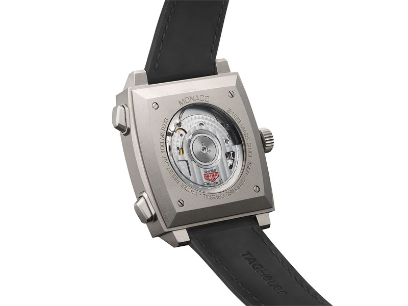 The caseback of the TAG Heuer Monaco Titan Special Edition