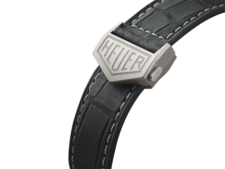 The watch is water resistant to 100 meters, and features a novel anthracite alligator leather strap with a texture recalling the grooves of race car tires. The screwed-down caseback is in hand-blasted sapphire crystal. The TAG Heuer Monaco Titan Special Edition is limited to 500 pieces.