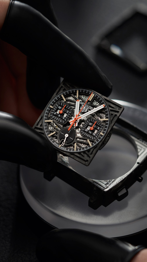 The carbon-cased piece is a true watchmaking tour de force, playing on more than half a century of TAG Heuer heritage, while also embracing the best of the company’s 21st century savoir faire and innovation. The result is a very special watch that’s both a fond nod to the past and a symbol of TAG Heuer’s insatiable appetite for avant-garde Swiss watchmaking.